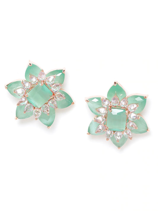 Green Rose Gold-Plated AD Studded Handcrafted Floral Studs