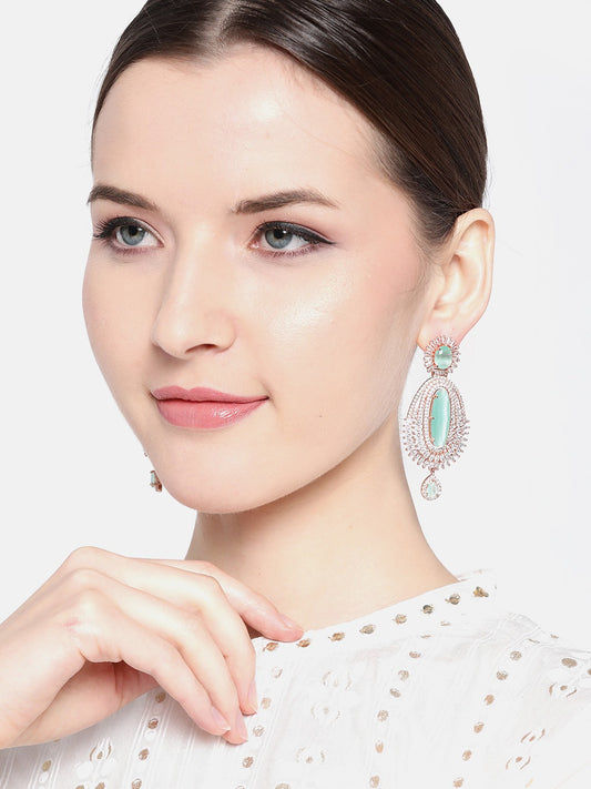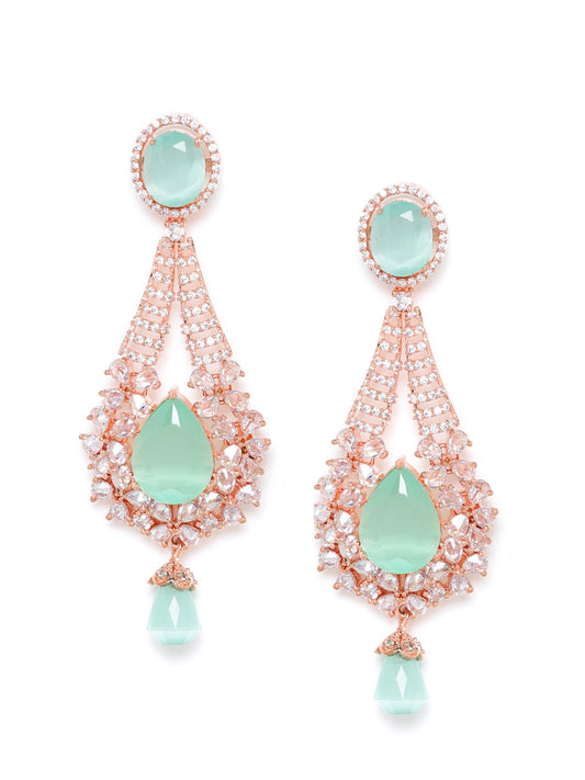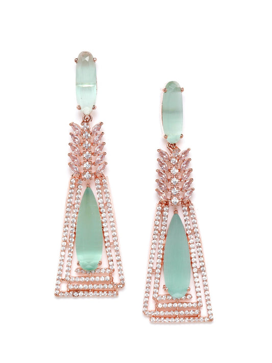 Sea Green Rose Gold-Plated Handcrafted AD-Studded Contemporary Drop Earrings