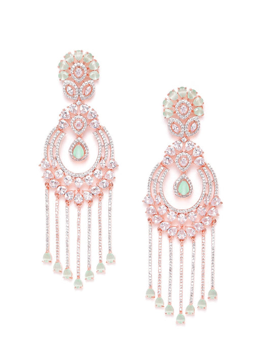 Sea Green Rose Gold-Plated AD Stone-Studded Handcrafted Drop Earrings