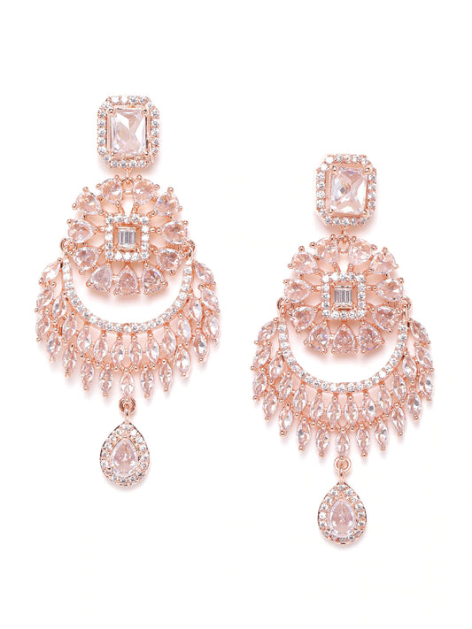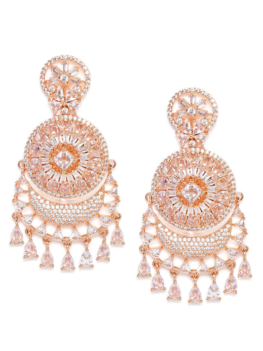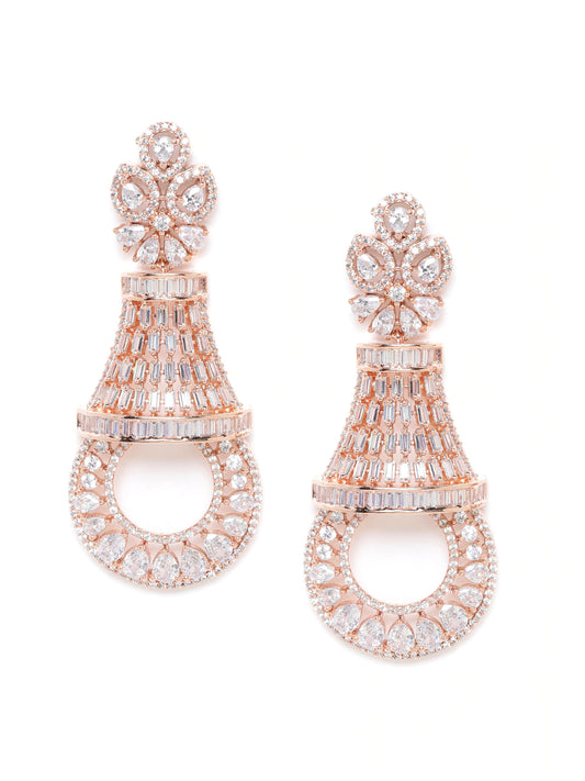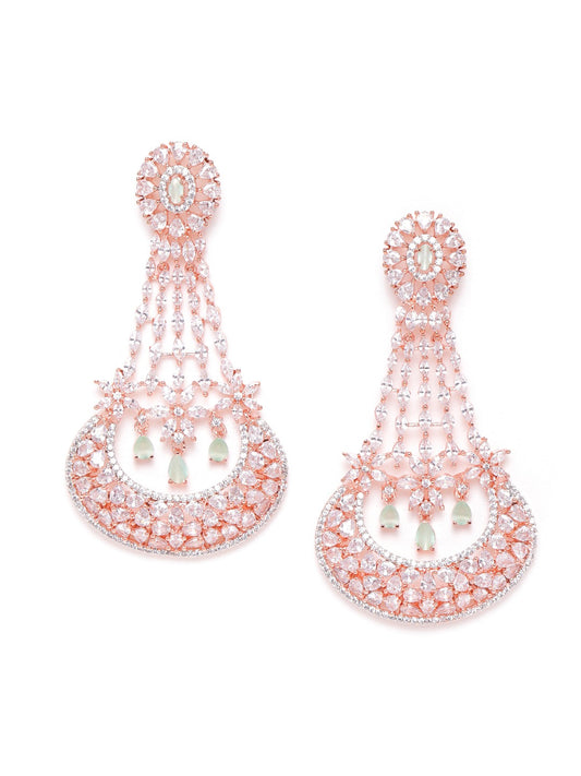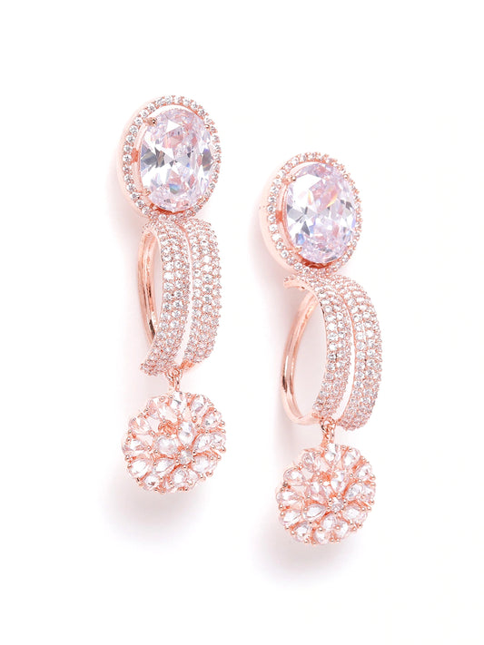 Rose Gold-Plated CZ Studded Handcrafted Drop Earrings