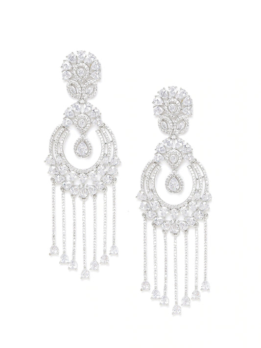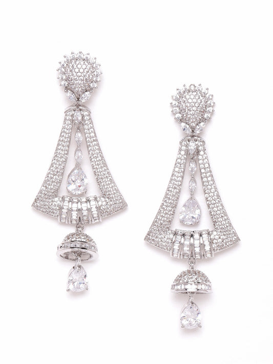 Silver-Plated AD-Studded Handcrafted Contemporary Drop Earrings