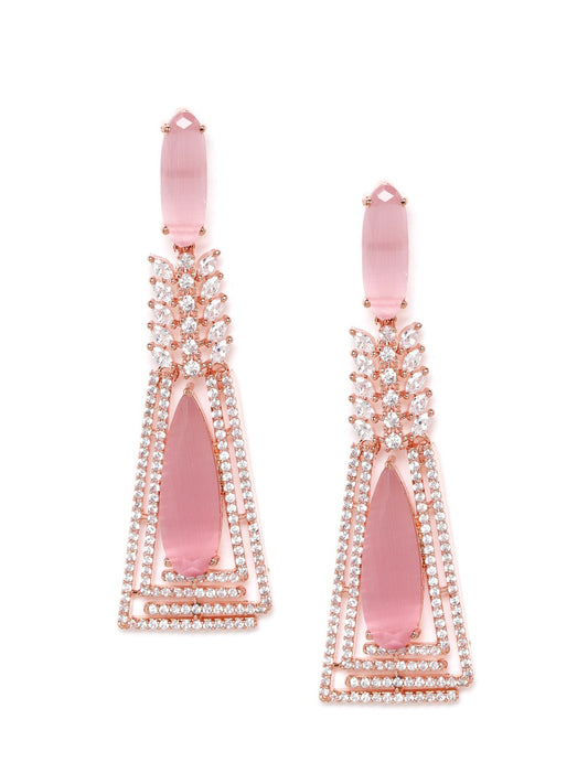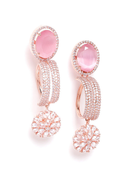 Pink Rose Gold-Plated AD Studded Handcrafted Drop Earrings