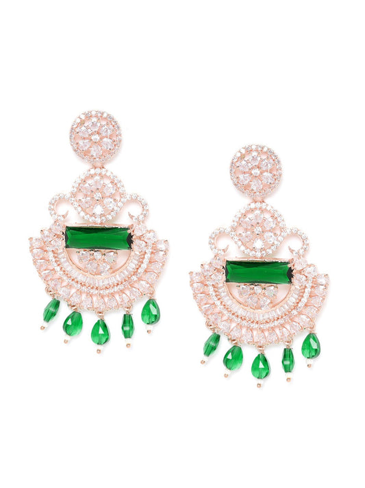 Green Rose Gold-Plated AD Studded Handcrafted Drop Earrings
