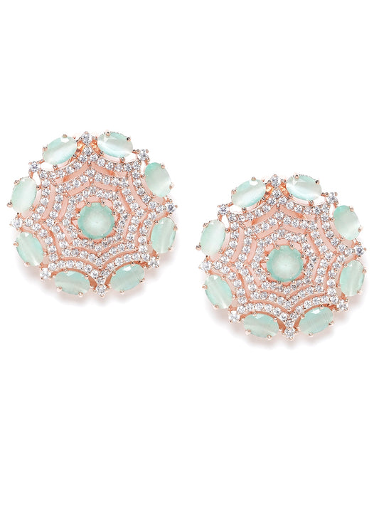 Sea Green Rose Gold-Plated Handcrafted Circular AD Studs