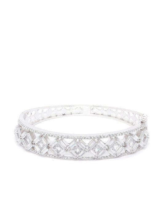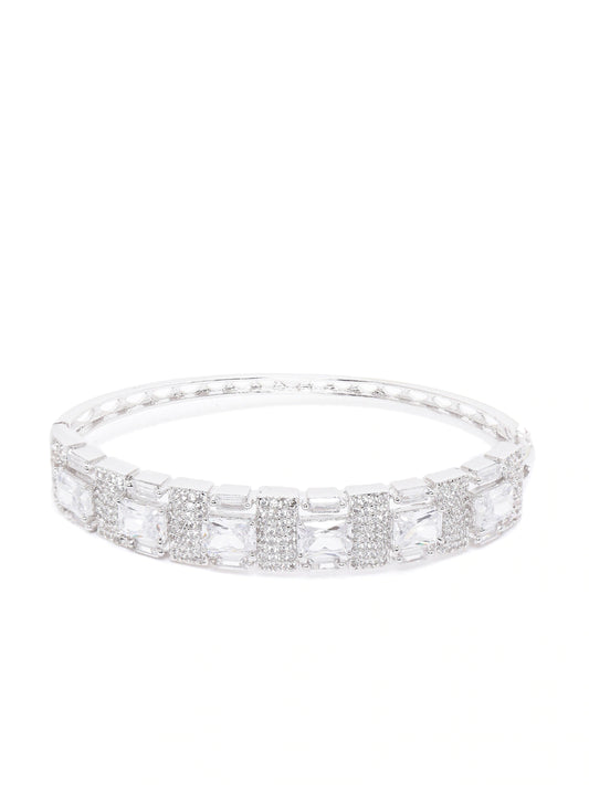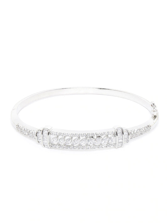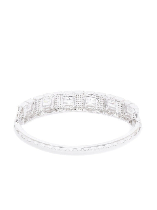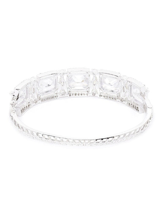 Women White Brass American Diamond Handcrafted Rhodium-Plated Kada Bracelet