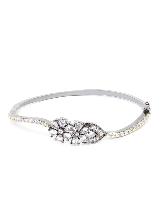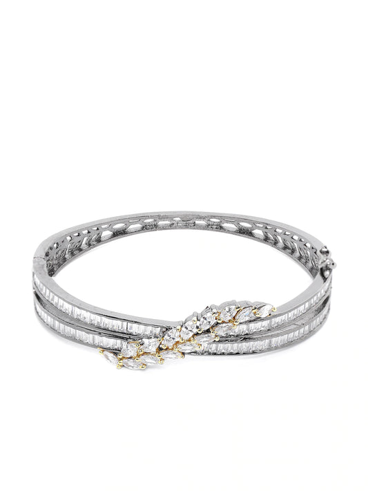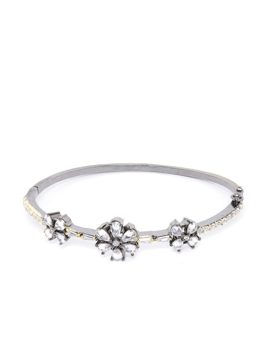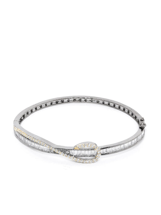 Women Gunmetal-Toned AD Studded Handcrafted Bangle Style Bracelet