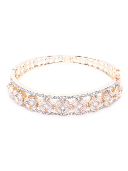 Women Rose Gold Plated AD Stone Studded Handcrafted Bangle Style Bracelet