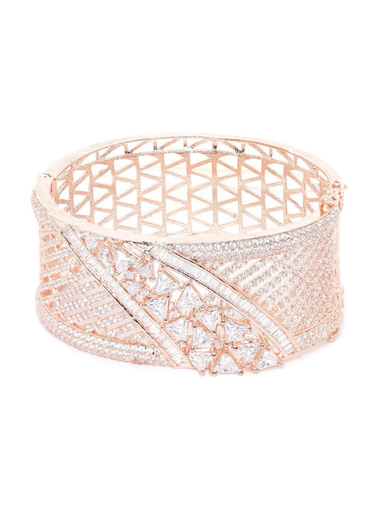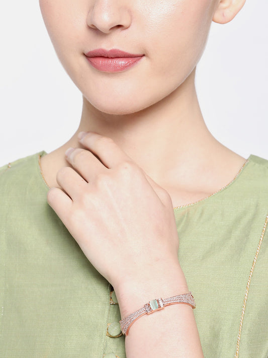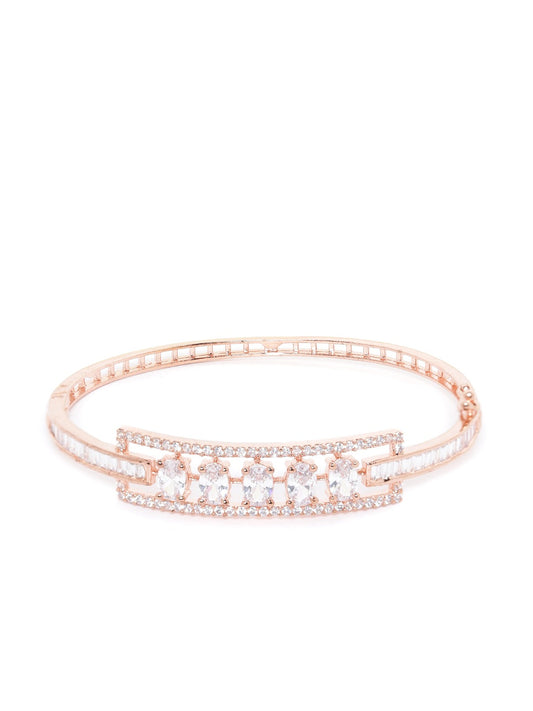 Rose Gold-Plated Handcrafted AD-Studded Bangle-Style Bracelet