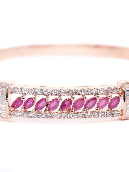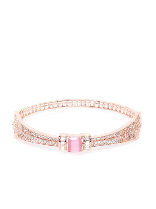 Pink Rose Gold Plated AD Stone Studded Handcrafted Bangle Style Bracelet