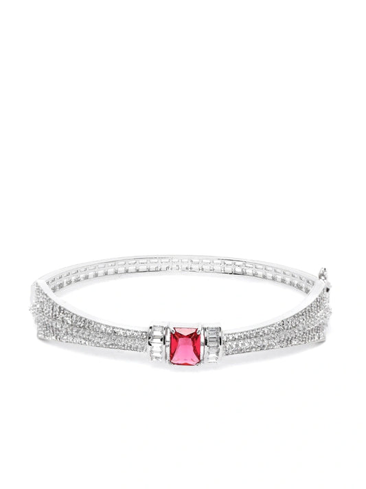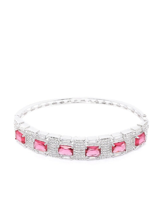 Magenta Silver-Plated Handcrafted AD-Studded Bangle-Style Bracelet