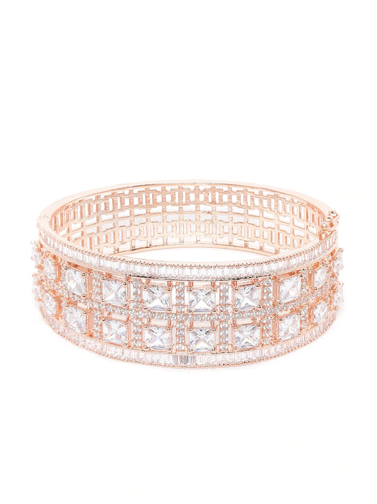 Rose Gold-Plated Handcrafted AD-Studded Bangle-Style Bracelet