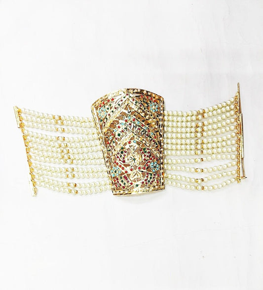 Golden White Jadau Hand Bracelet