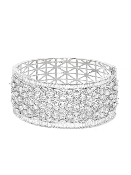 Women Silver- Plated AD Stone Studded Handcrafted Bangle Style Bracelet