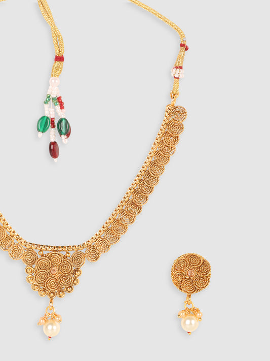 Gold-Toned Gold-Plated Stone-Studded Choker Jewellery Set