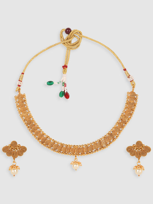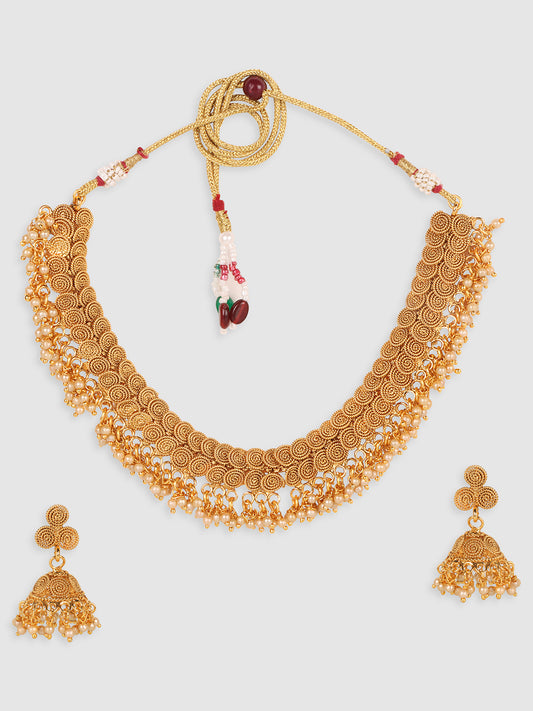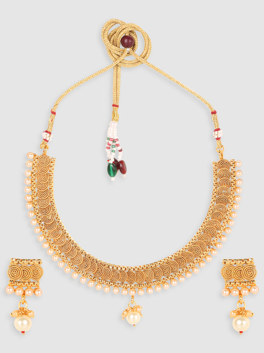 Women White & Gold-Plated Spiral Design Pearl Beaded Jewellery Set