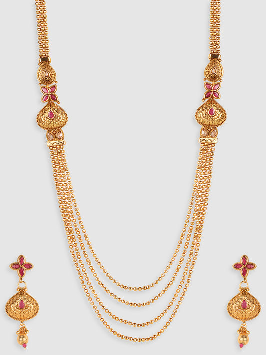 Gold-Plated & Magenta Stone Studded Jewellery Set