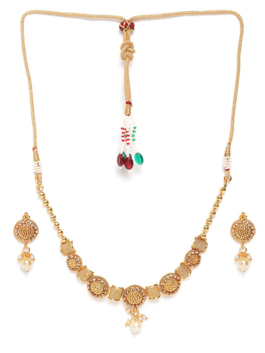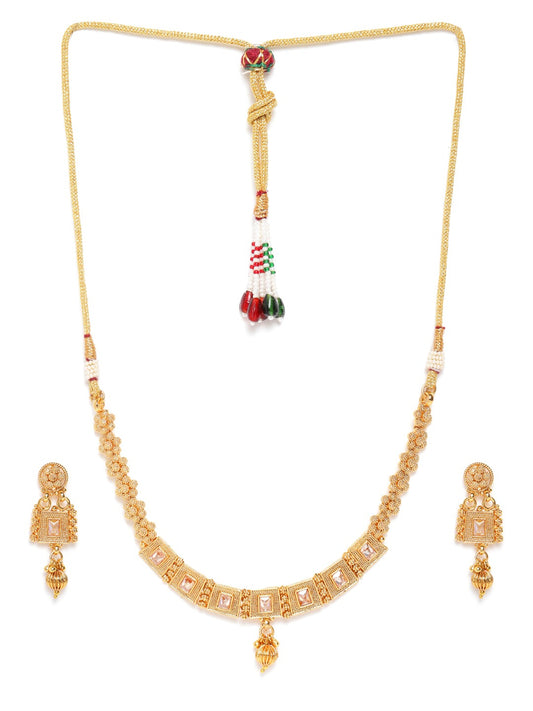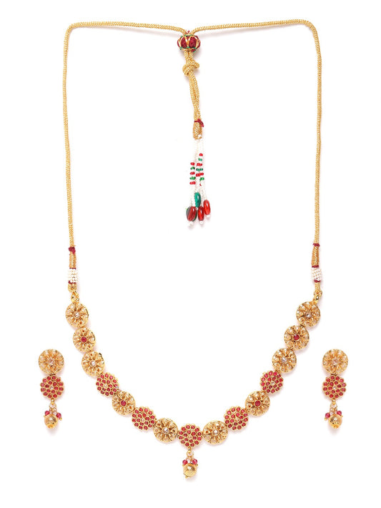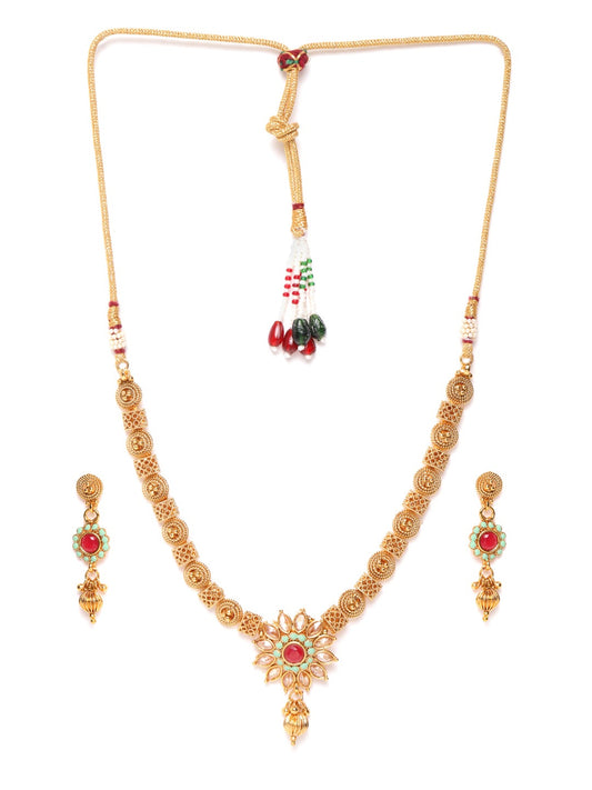 Women Gold-Plated Stone Studded Handcrafted Jewellery Set
