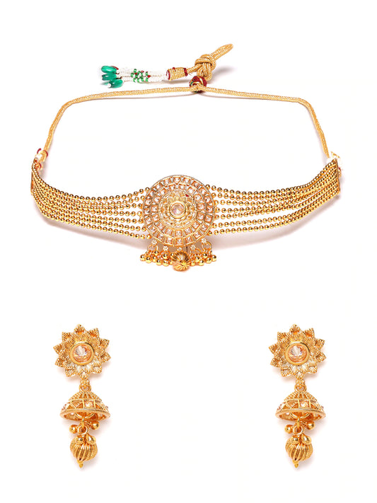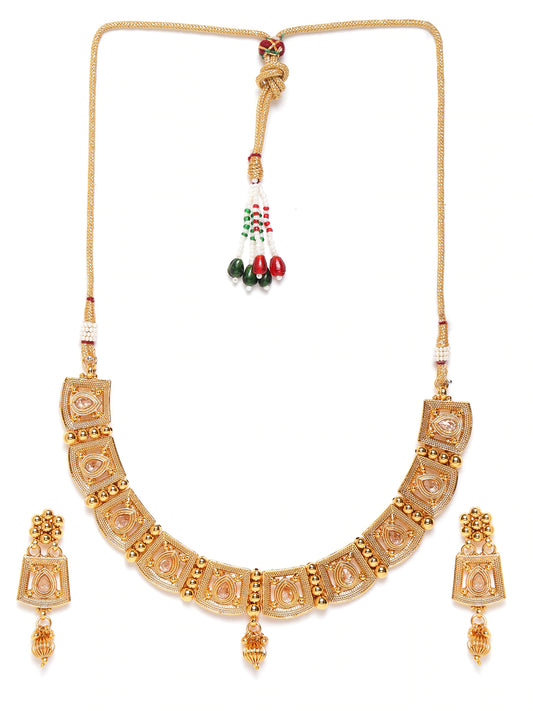Gold-Plated Handcrafted Stone-Studded Beaded Jewellery Set