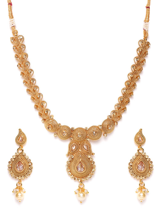 Gold-Plated Stone Studded Handcrafted Jewellery Set