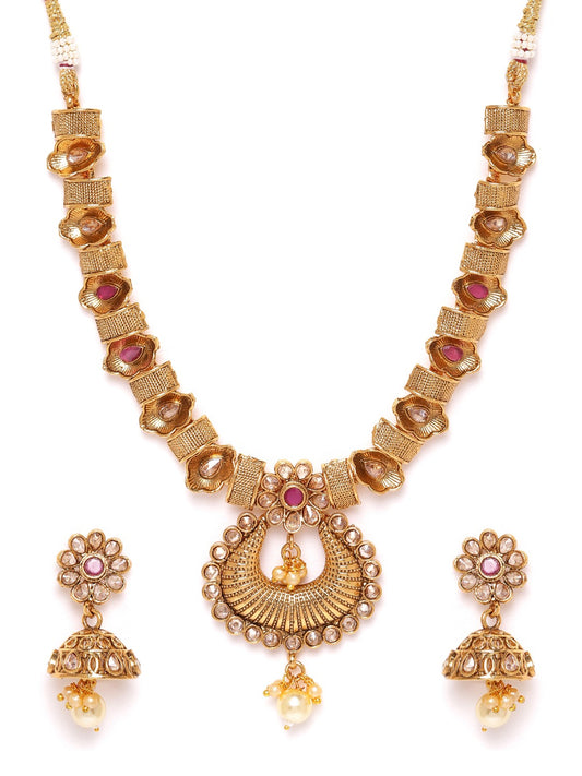 Gold-Plated Pink AD-Studded Handcrafted Jewellery Set