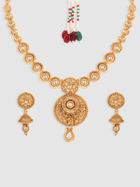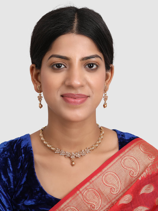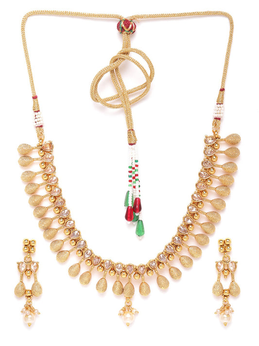 Gold-Plated & Off-White Stone Studded Jewelry Set