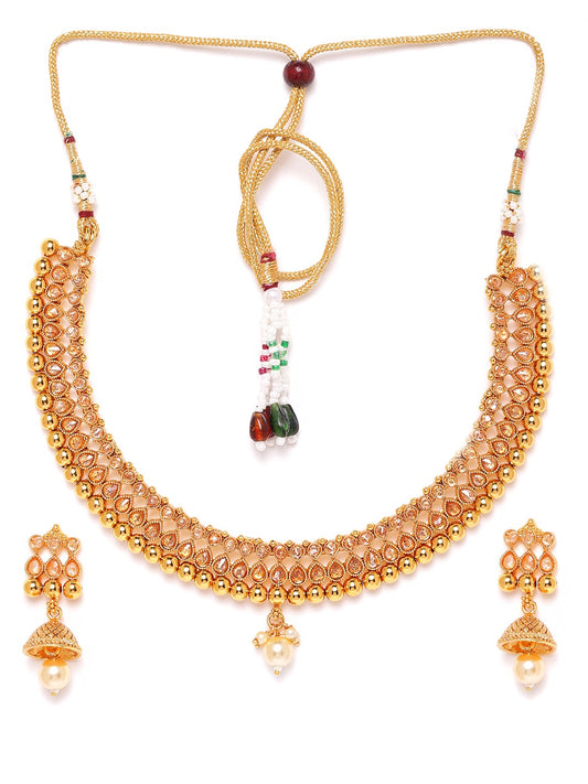 Gold-Plated CZ-Studded & Artificial Beaded Handcrafted Jewellery Set