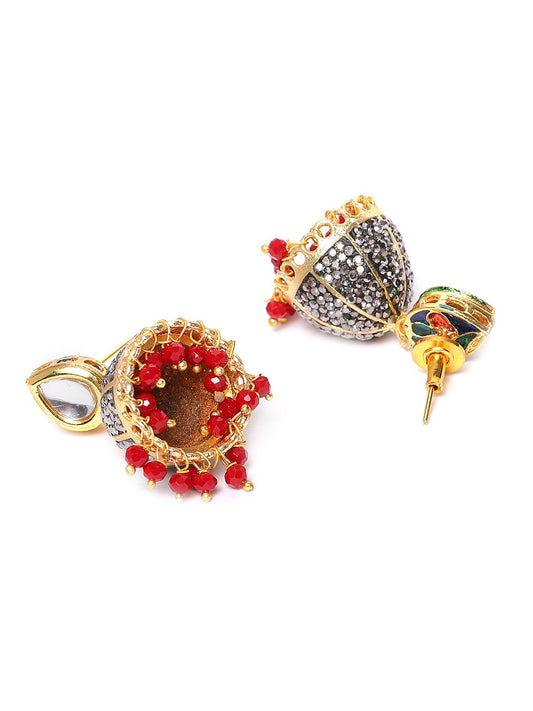 Red & Gunmetal-Toned Gold-Plated Stone-Studded Handcrafted Jewellery Set