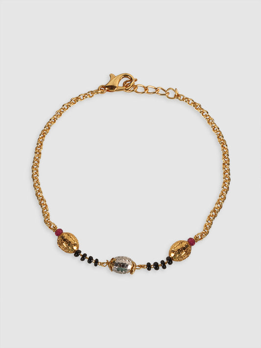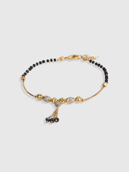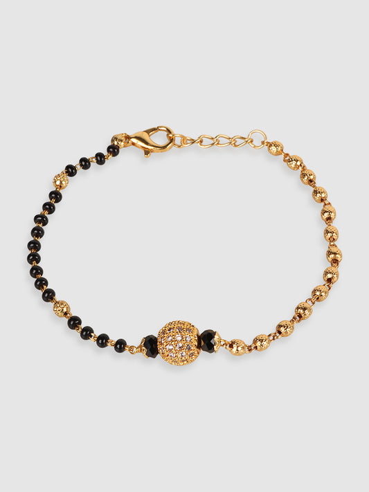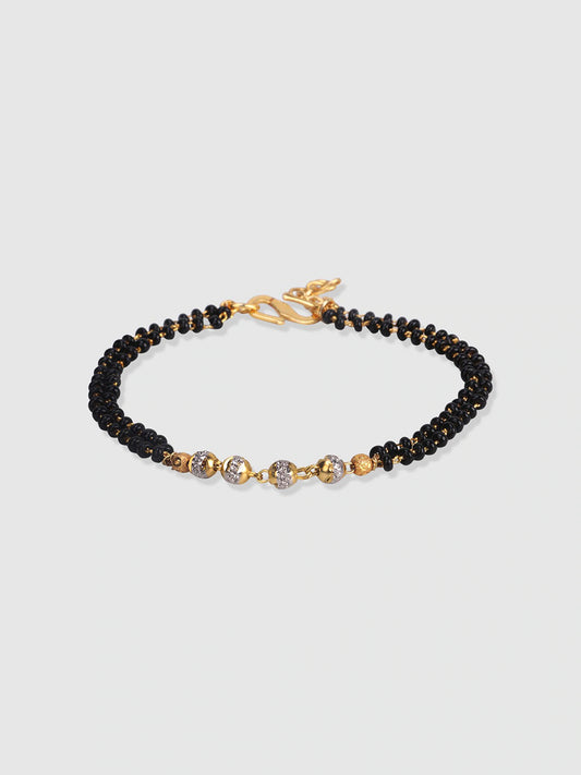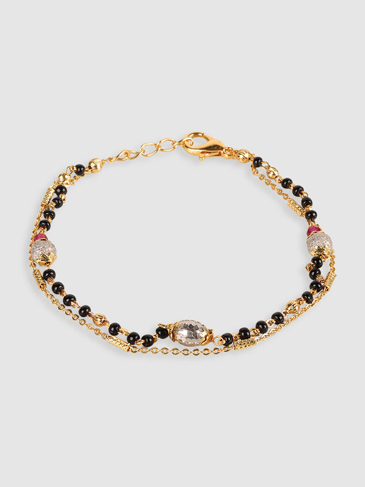 Women Gold-Toned & Black Handcrafted Mangalsutra Charm Bracelet