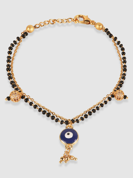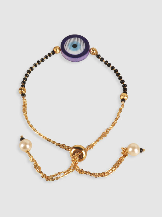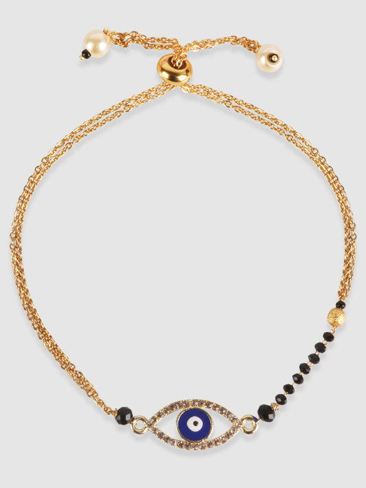 Women Gold-Toned & Blue Gold-Plated Evil Eye Charm Bracelet