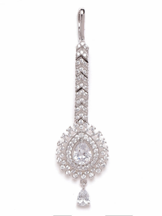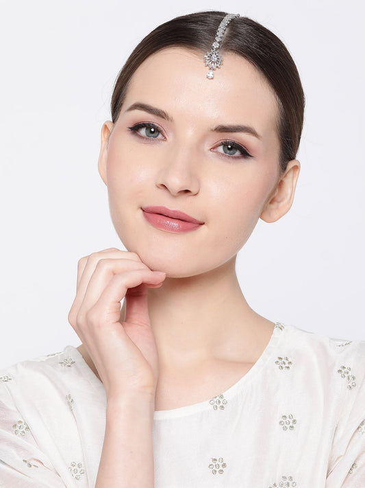 Silver-Plated CZ Stone-Studded Handcrafted Maang Tika