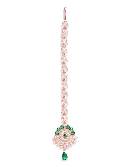 Green Rose Gold-Plated CZ Stone-Studded Handcrafted Maang Tika