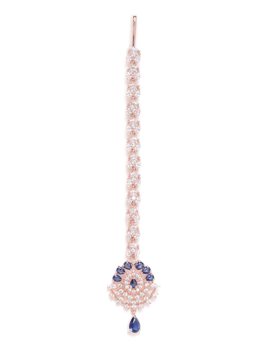 Navy Rose Gold-Plated CZ Stone-Studded Handcrafted Maang Tika