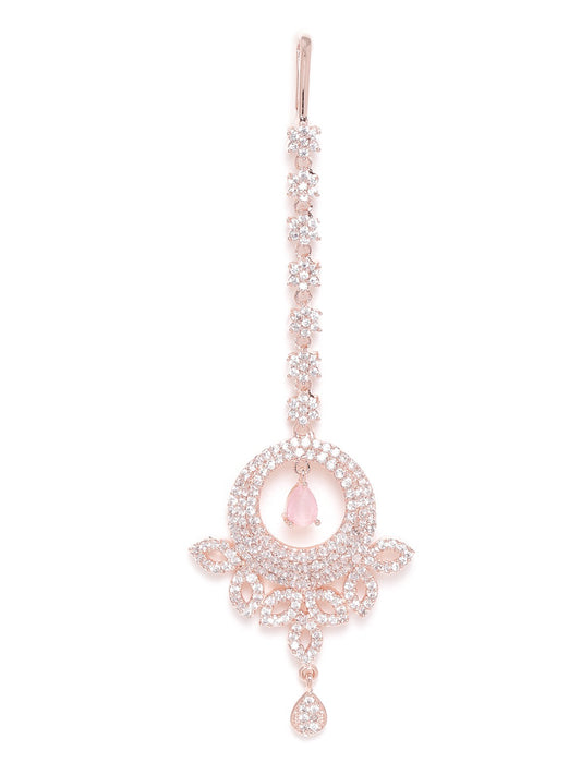Rose Gold-Plated CZ Stone-Studded Handcrafted Maang Tika