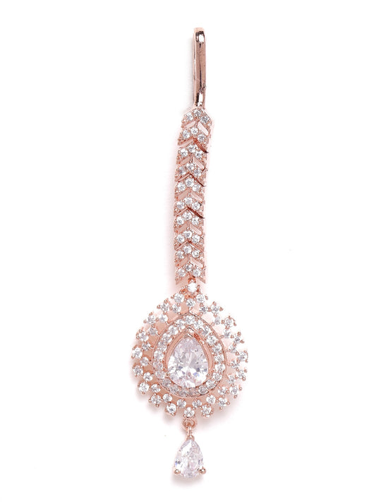 Rose Gold Plated AD Studded Maang Tika Head Jewellery