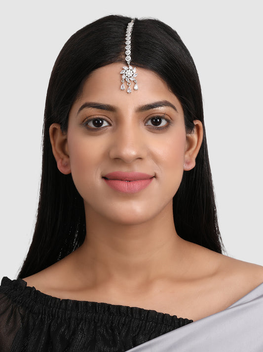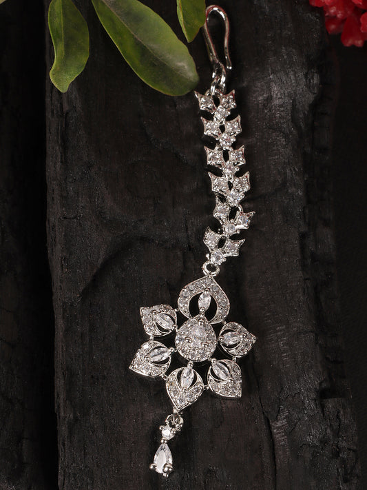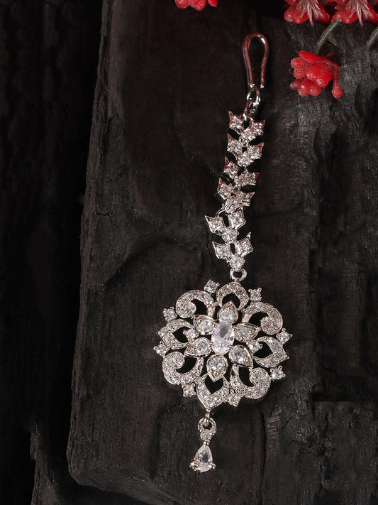 Silver-Plated AD-Studded Circular Shape Maangtika