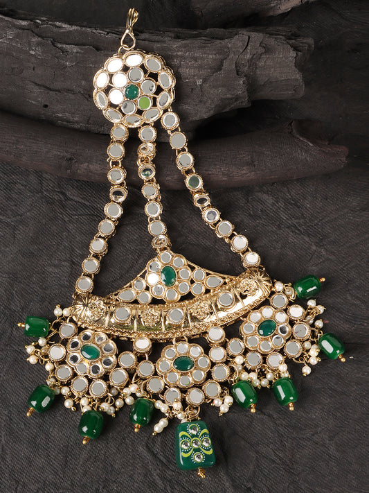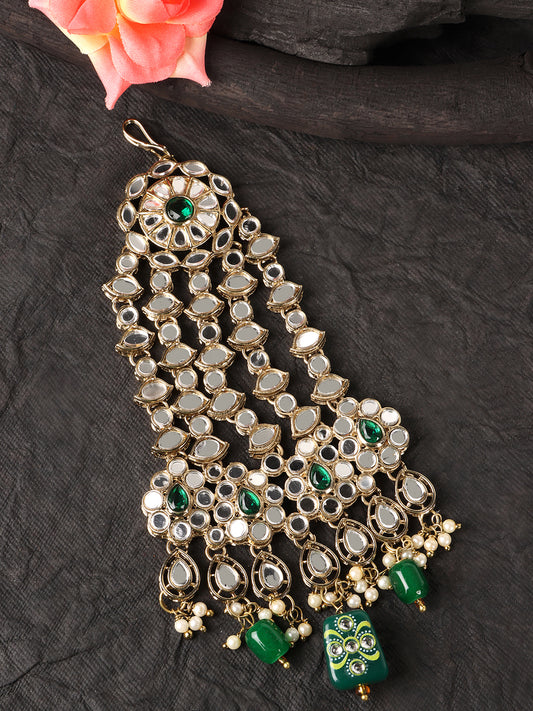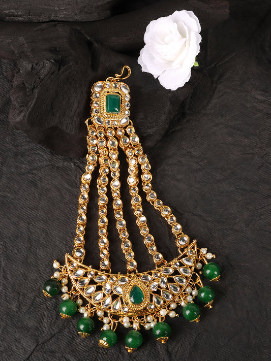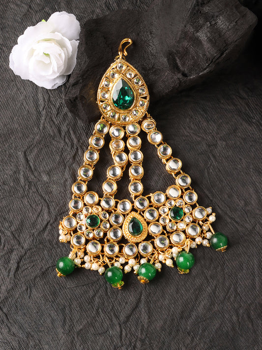 Gold-Plated Green Kundan Studded Jhumar Passa Head Jewellery