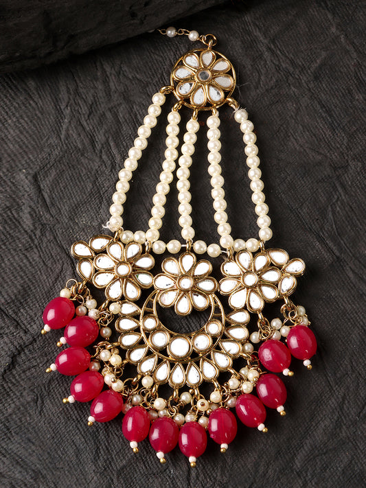 Gold-Plated Maroon Kundan Studded SheeshPhool Head Jewellery