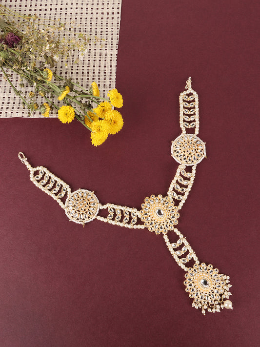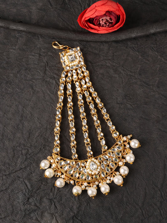 Gold-Plated & White Kundan-Studded Jhumar passa Head Jewellery
