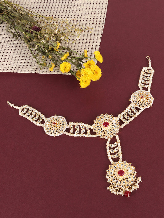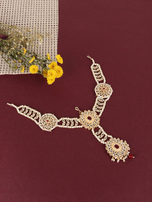 Gold-Plated Maroon & White Kundan-Studded Matha Patti