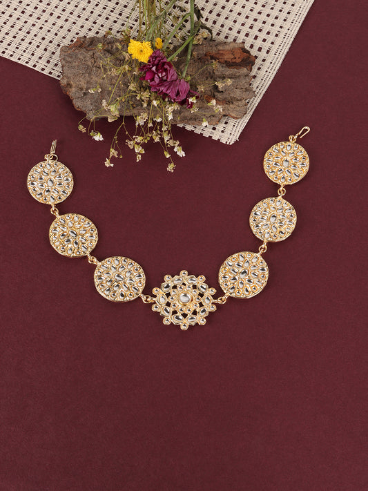 Gold-Plated & White Kundan Studded Floral Shape Head Band