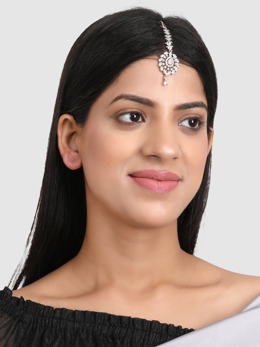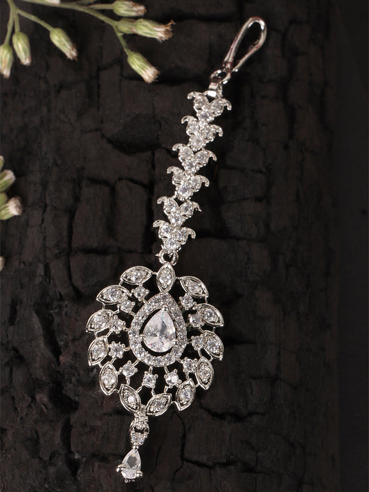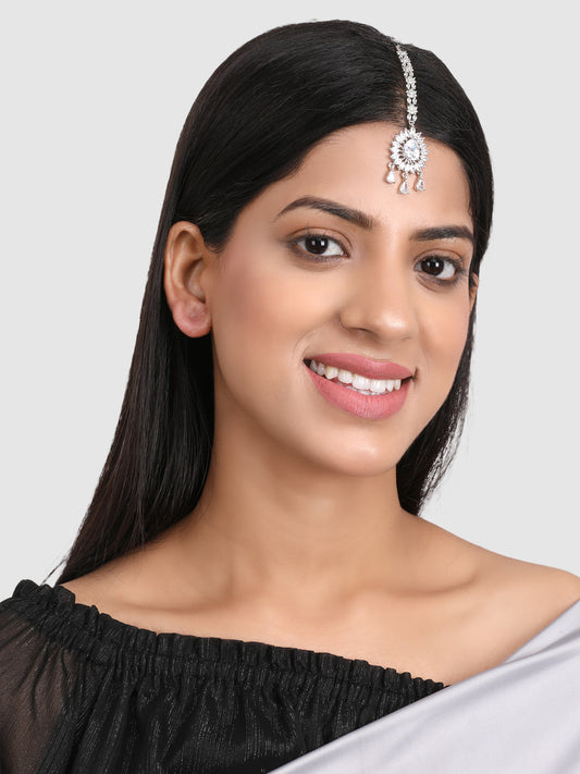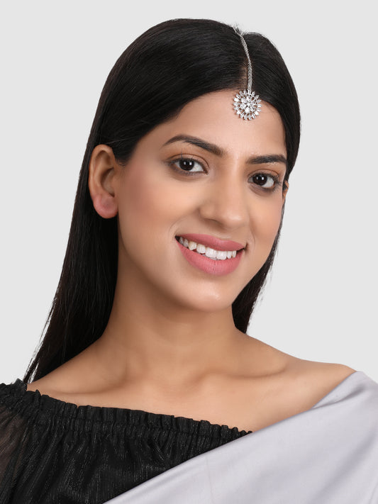 Silver-Plated American Diamond Studded Maangtikka Head Jewellery