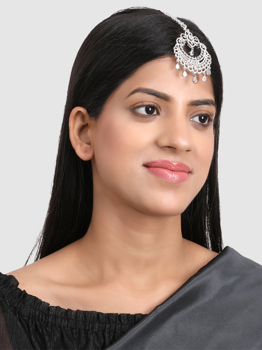 Women Silver-Plated AD Studded Handcrafted Maang Tika