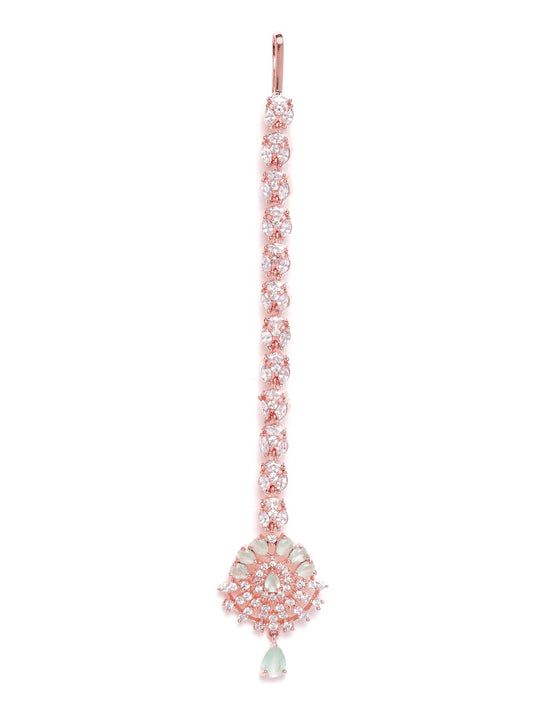 Sea Green Rose Gold-Plated CZ Stone-Studded Handcrafted Maang Tika