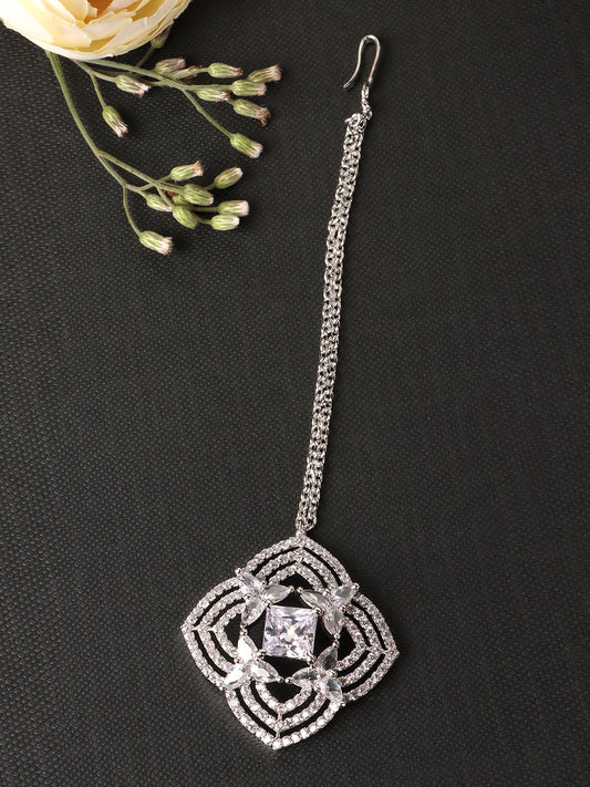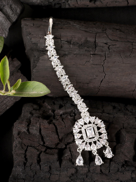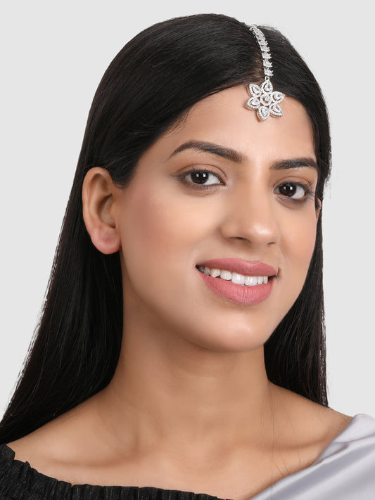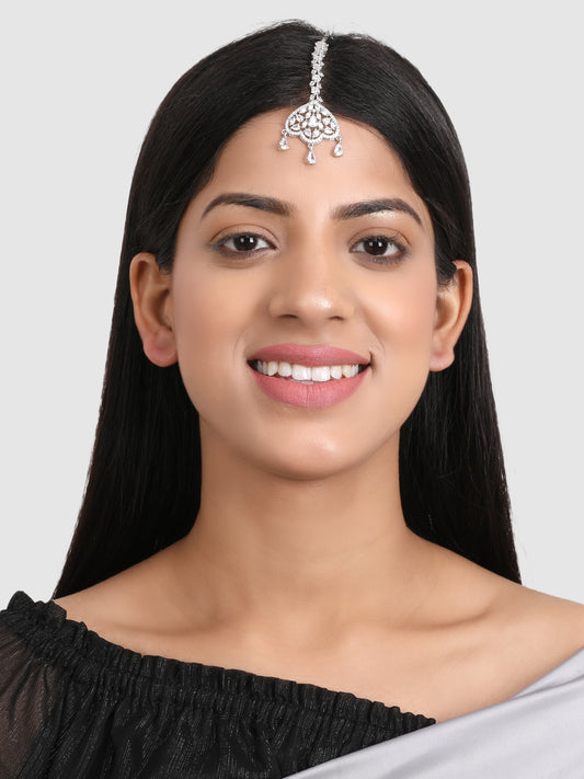 Women Silver-Plated AD-Studded Maang Tikka Head Jewellery