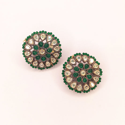 Woman Royal Emerald Kundan Round Earrings