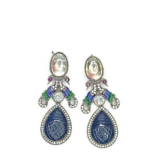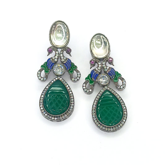 Monochrome Majesty Peacock Kundan Earrings