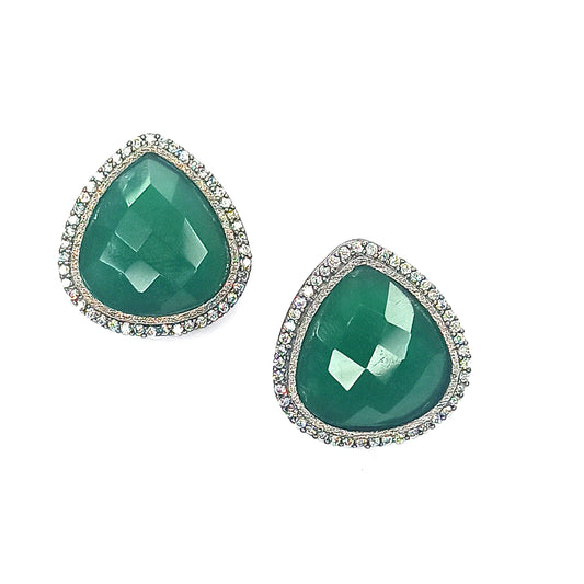 Emerald Leaf Kundan Stud Earrings