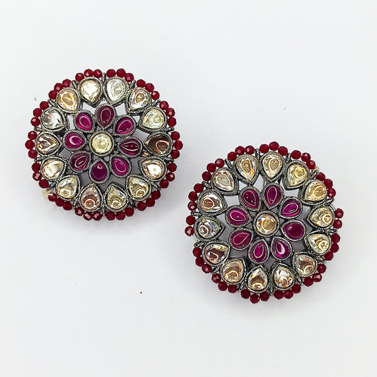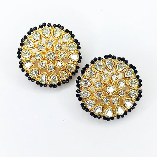 Regal Noir Round Kundan Stud Earrings