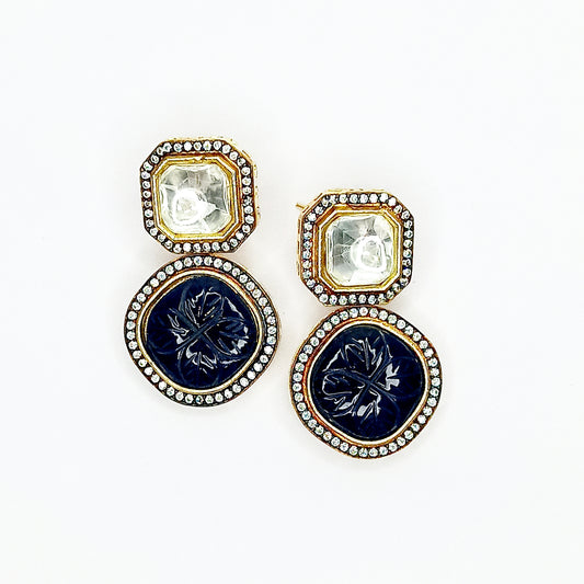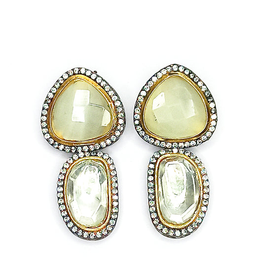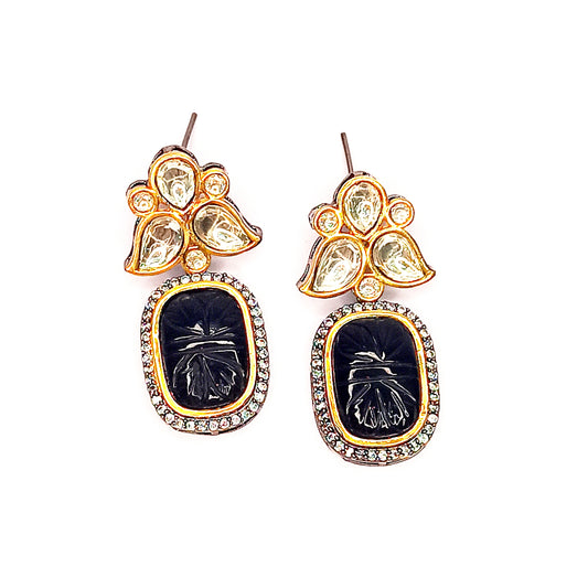 Premium Glow Black & Cream Kundan Drops