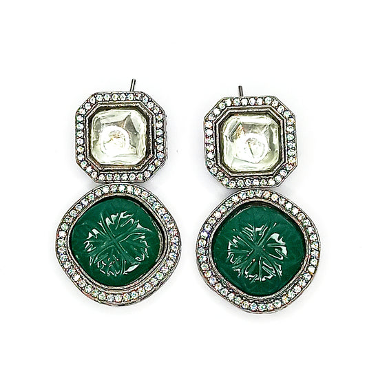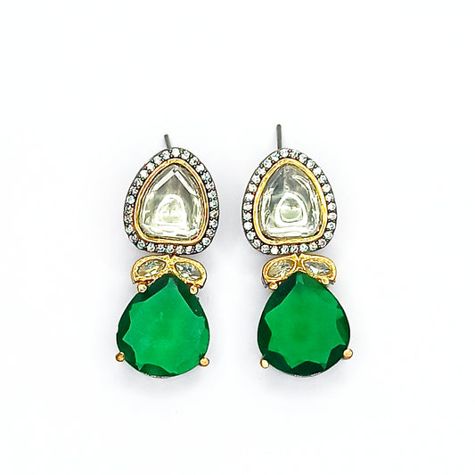 Party Wear Forest Green Kundan Drop Earrings